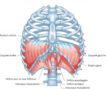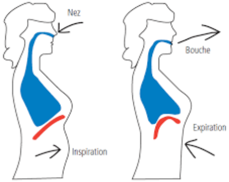 Avant tout il faut comprendre le mécanisme de la respiration : le muscle principalement engagé pour l'inspiration est le diaphragme. Il est accroché tout autour de la cage thoracique d'un coté et son extrémité est accroché au niveau des lombaires. Il a une forme de parapluie qui sépare la cavité abdominale de la cavité pulmonaire. A l'inspiration, il se contracte et les deux extrémités se rapprochent, le diaphragme descend vers la cavité abdominale pour laisser les poumons se remplir, et à l'expiration, il suffit de le relâcher pour qu'il remonte dans la cavité pulmonaire pour vider les poumons. C'est la respiration diaphragmatique, celle qui se fait naturellement quand on relâche tous les muscles collatéraux pour laisser faire le système autonome.